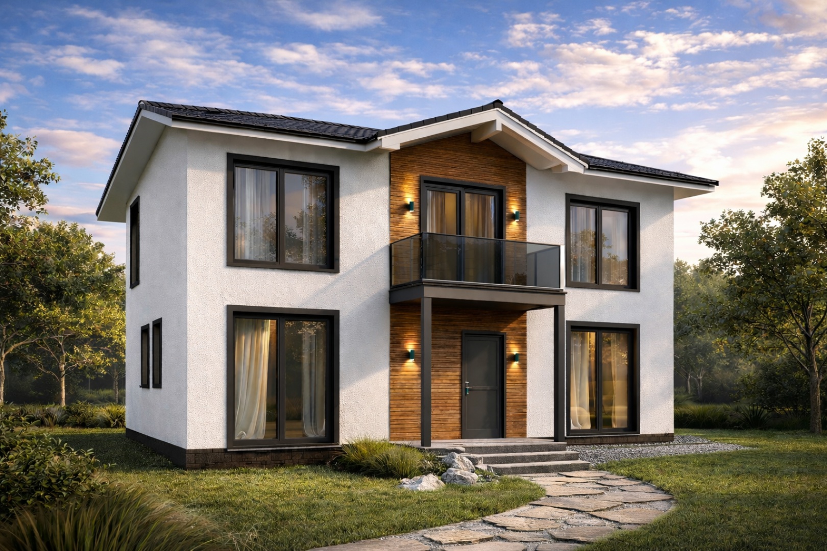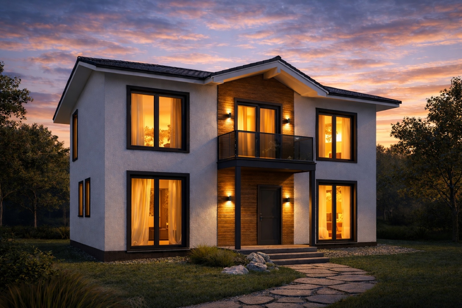 Проект дома Alta Villa площадью 175 кв.м. воплощает в себе продуманный дизайн современного загородного дома, где жить Вам будет очень комфортно. В проекте Alta Villa большая площадь остекления фасадов, поэтому внутри дома светло и просторно.