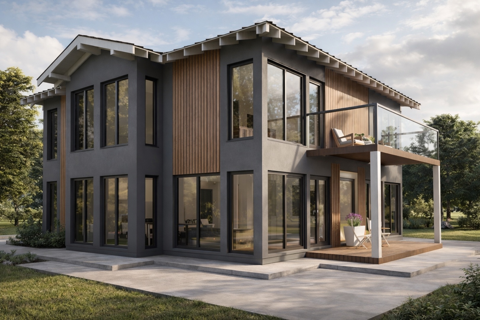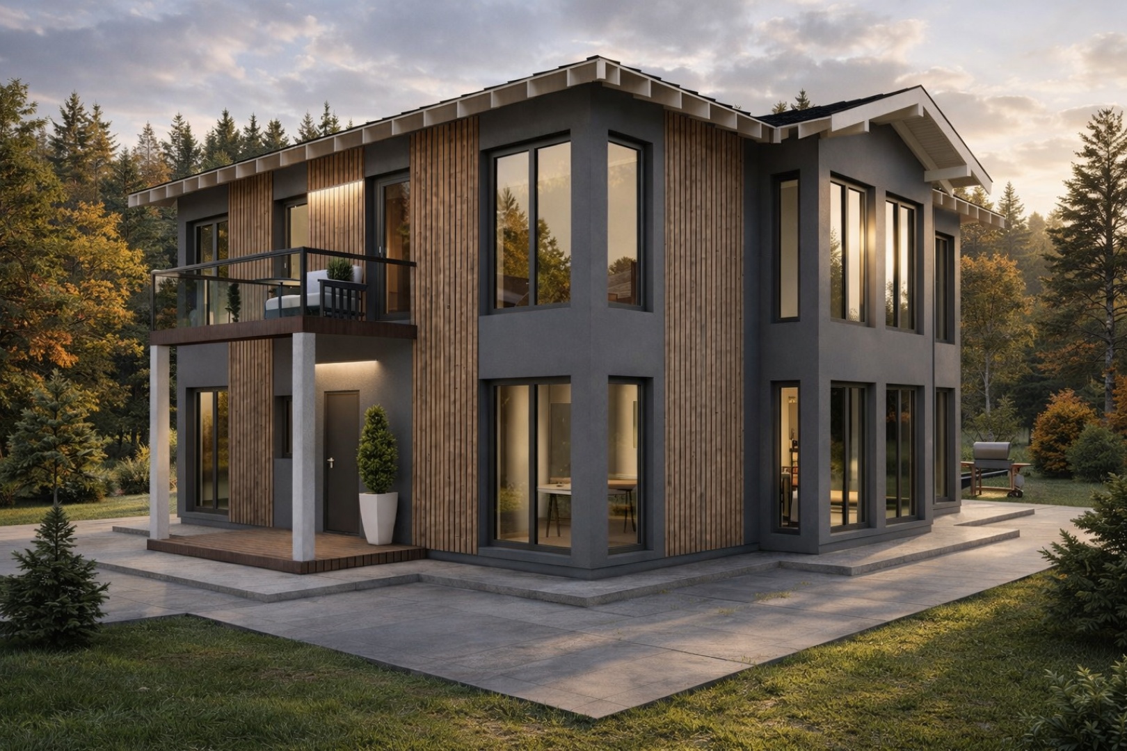 В проекте City Villa предусмотрены два полноценных этажа, большая площадь остекления позволяет наслаждаться пейзажем из любой комнаты. Здесь комфорт городской жизни сочетается с загородным уединением.