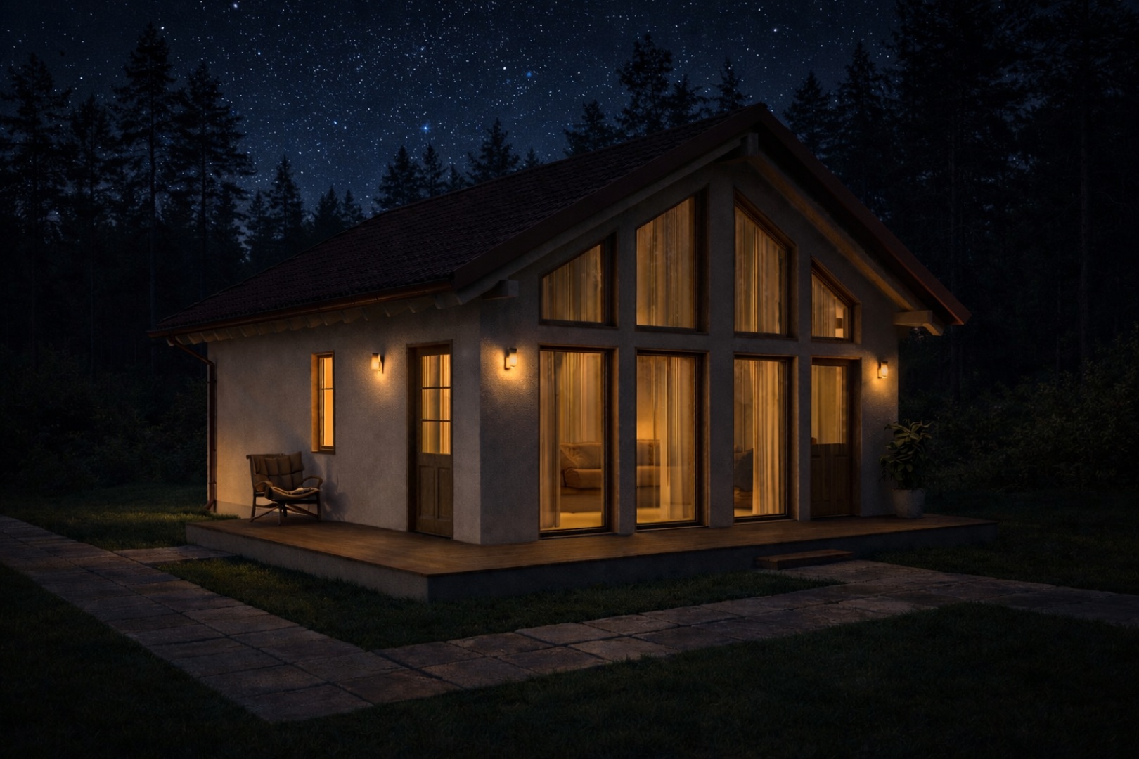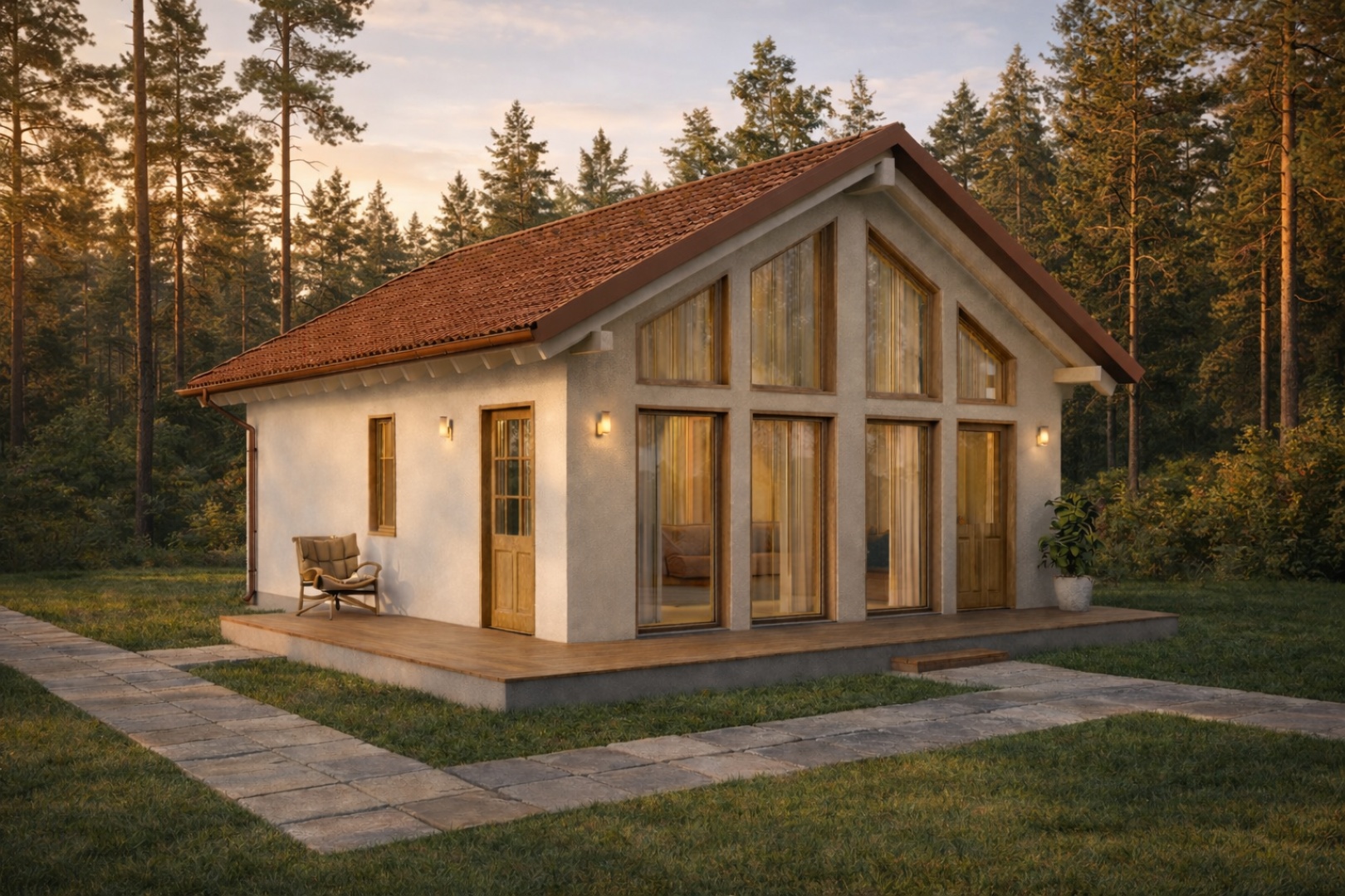 Компактная планировка дома FORMULA 87 порадует вас своей практичностью. На первом этаже расположены две уютные спальни, санузел и просторная кухня-гостиная с выходом на террасу. Пространство второго этажа решено в виде свободной планировки